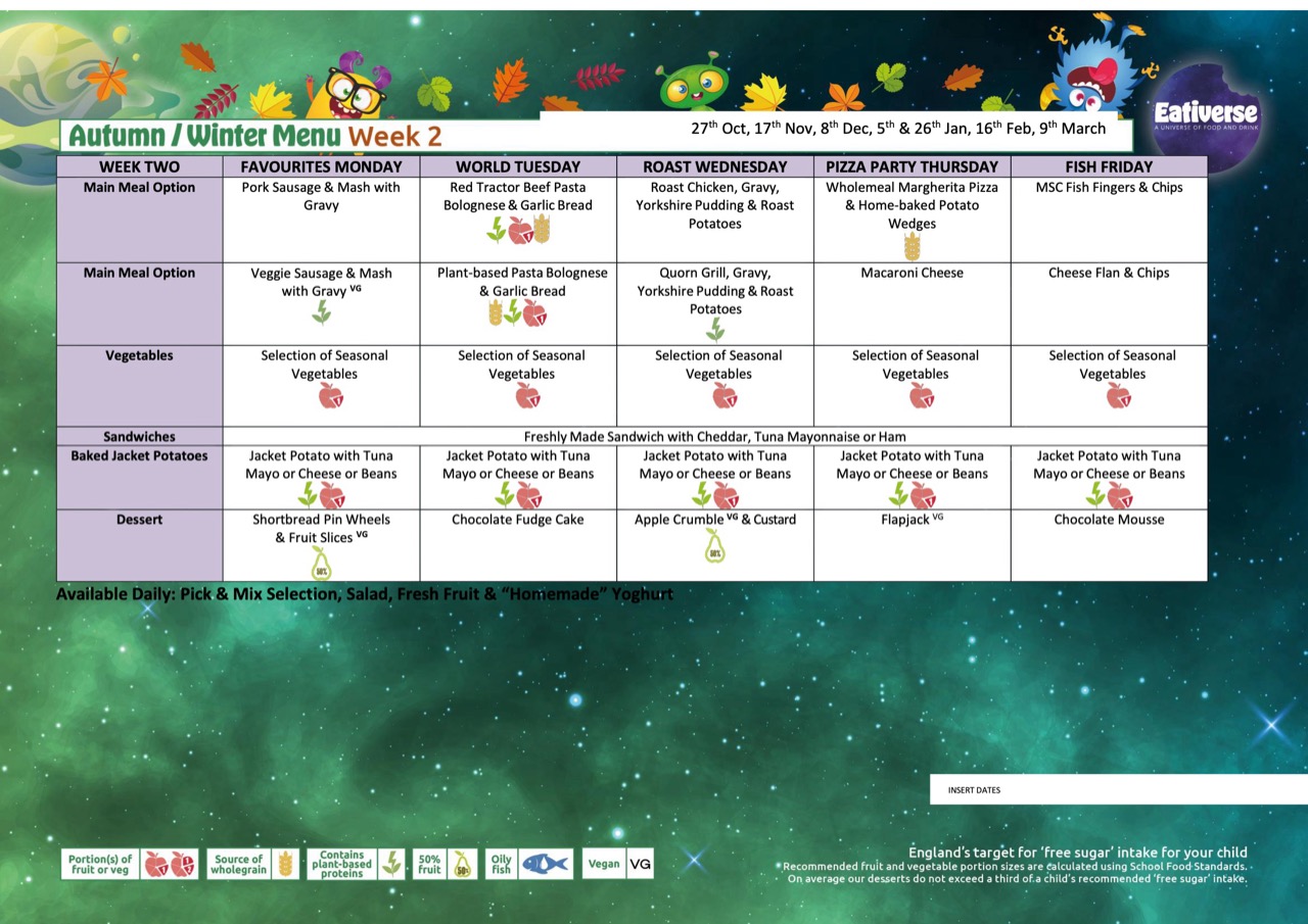 - Dietary requirements can be catered for. Please contact the school office in the first instance if this is the case.